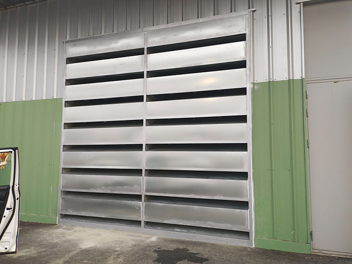 该机房内三台空压机,最多同时开启两台,因机房对面约50M为居民区,为避免机房噪音影响居民,特委托我司设计安装百叶消声器。